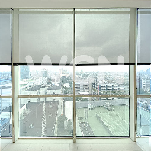 Roller Blinds Solar Screen dirancang untuk memenuhi kebutuhan tirai pada area kantor dengan standar fungsionalitas dan estetika yang optimal. Menggunakan material polyester berkualitas yang tahan terhadap paparan sinar matahari, produk ini mampu membantu mengurangi intensitas cahaya yang masuk ke dalam ruangan sehingga suasana kerja tetap sejuk dan nyaman, bahkan pada siang hari. Karakter material yang efektif dalam memblokir cahaya memberikan tingkat privasi yang terjaga, mendukung aktivitas bekerja tanpa gangguan dari luar.